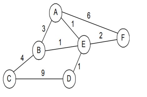 - 먼저 라우팅 동작을 간단히 살펴보겠다. 아래에 가상의 네트워크를 나타냈는데 A, B..F는 라우터를 나타내고 라우터를 연결하는 링크에 기록된 숫자는 이 링크를 지나가는데 소요되는 코스트를 나타낸다.