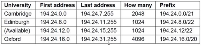 - 인터넷에는 가능한 host-specific 루트를 사용하지 않고 network-prefix 루트를 사용하는데 이렇게 함으로써 모든 호스트 별로 라우팅 항목을 만들지 않고 따라서 라우팅 테이블을 최대한 간단히 할 수 있다.