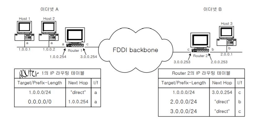 - 따라서 루트 정보를 호스트 별로 기록하는 것이 아니라 netid 부분만 처리하면 된다. 이렇게 해도 되는 이유는 우선 패킷을 목적지 호스트가 접속되어 있는 네트워크까지만 전달하면 목적지 네트워크 내에서는 라우터가 ARP 등을 이용하여최종 호스트로 패킷이 전달될 수 있기 때문이다.