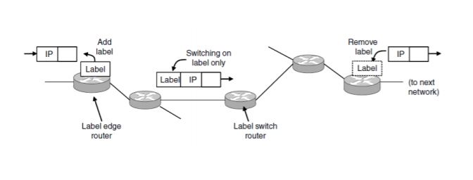 - MPLS에서는 레이블 개념을 도입하였다. MPLS에서는 IP 주소 대신 각 패킷 앞에 있는 이 레이블을 보고 신속하게 포워딩이 바로 이루어진다.